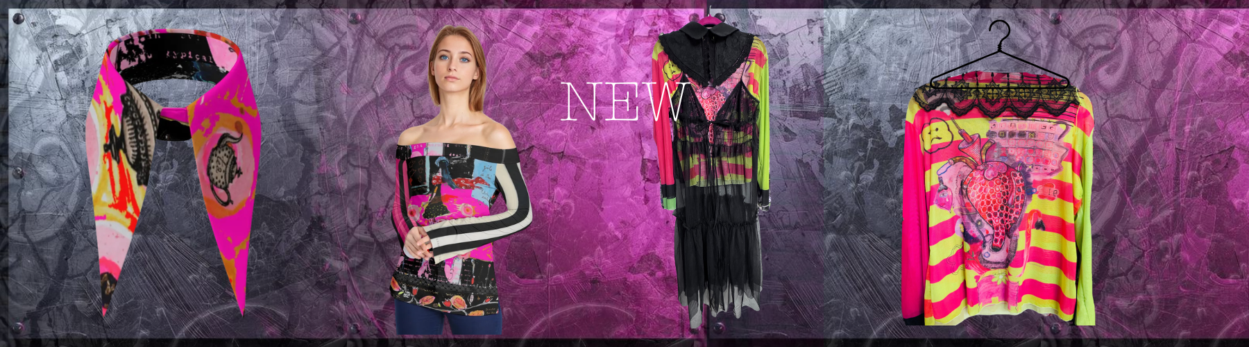 New Add Wish List Quick view Choose Options Pink Wiggle heart mesh dress Fabulous hand painted sacred heart with magenta, black, silver, reds, over this stripey blush and black background make for an edgy funky piece of art to wear. Style as a top or dress on it's own, or over pants, jeans, skirts, or even wear to the... MSRP: $40.00 Choose Options Compare